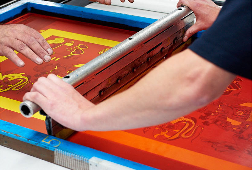 Silk screen printing, also known as screen printing, is a printing technique in which ink is pushed through a stencil (also called a screen) onto a substrate, such as plastic, fabric, or paper. The stencil is typically made of a fine mesh material, such as silk, nylon, or polyester, which is stretched over a frame. The stencil is then coated with ink, and a squeegee is used to push the ink through the stencil and onto the substrate.